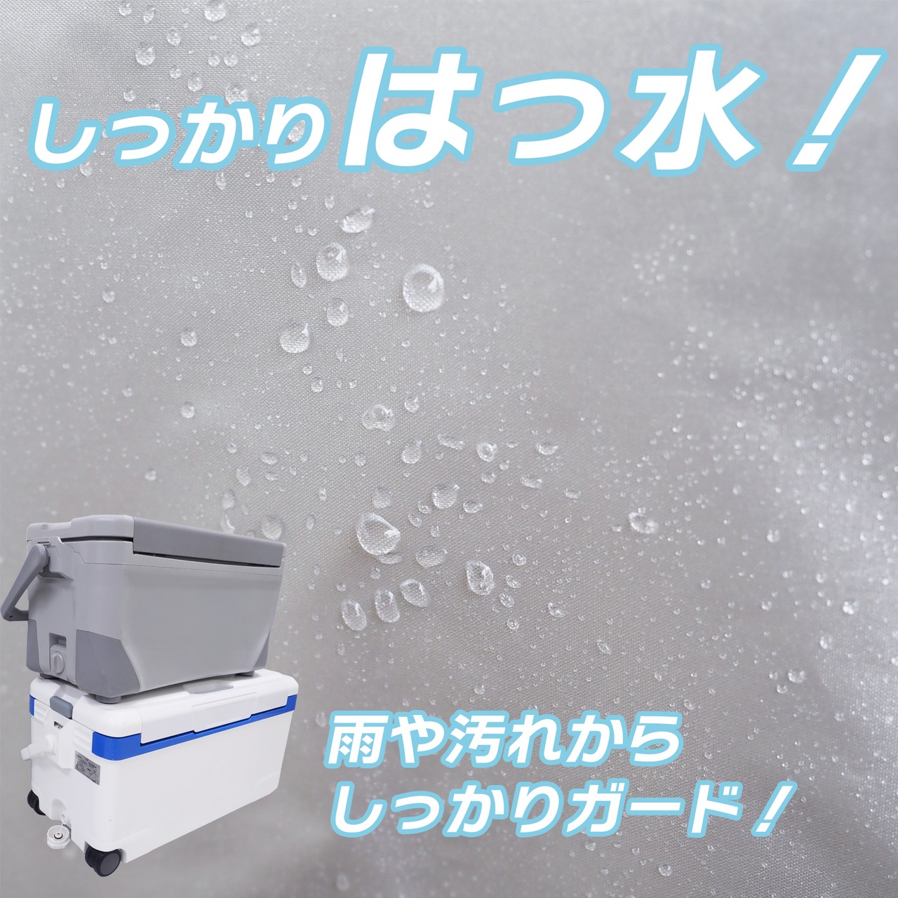 目的:本製品はクーラーボックスカバーです。クーラーボックスやタックルボックスをホコリ・雨などから守り、清潔に保つための製品です|